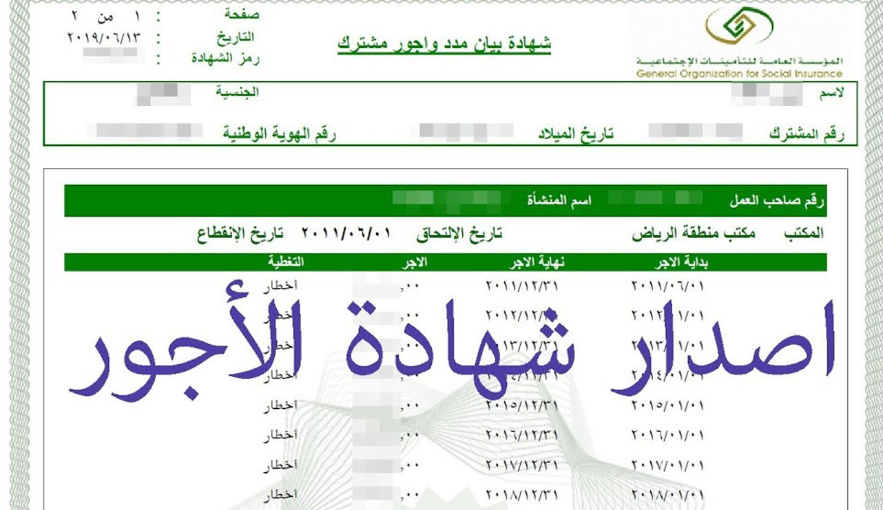 إصدار شهادة راتب من التأمينات الاجتماعية