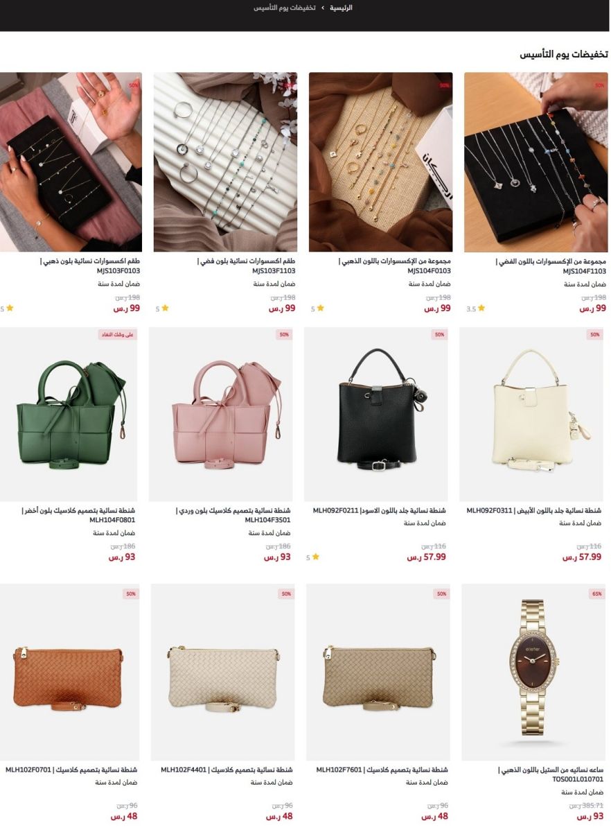 في متجر زايروس، تجد عروض مذهلة على العطور والإكسسوارات، مثل عطر نسائي بسعر 90 ريال بدلًا من 120 ريال وساعة رجالية باللون الأسود بسعر 127.01 ريال بدلًا من 254 ريال.
