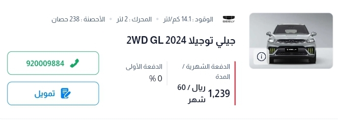 - جيلي توجيلا 2024 2WD GL أوتوماتيك: سيارة رياضية معتمدة على محرك بنزين بسعة 2 لتر وقوة 238 حصان، تضمن أداءً قويًا واقتصاديًا في استهلاك الوقود.