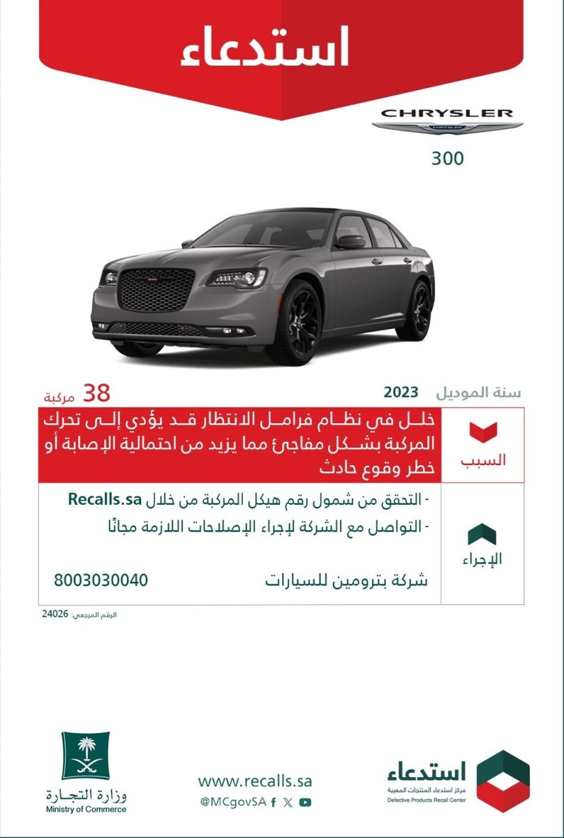 أعلنت وزارة التجارة عن استدعاء 234 سيارة من طرازات دودج مثل Charger وChallenger وكرايسلر "300" لعام 2023، وذلك بسبب وجود خلل في نظام فرامل الانتظار، ويمكن أن يؤدي هذا الخلل إلى تحرك المركبة بشكل غير متوقع، مما يزيد من خطر وقوع حوادث أو إصابات.