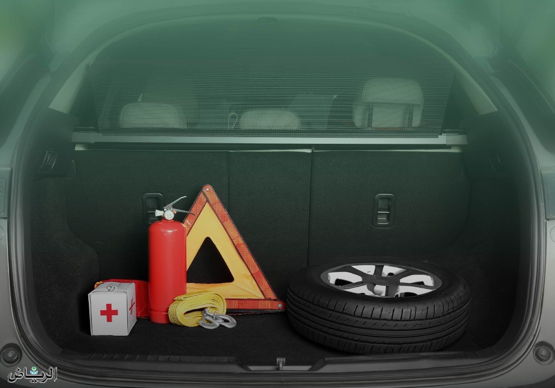 تشمل هذه الأدوات العجلة الاحتياطية ومجموعة الأدوات الخاصة بتغيير الإطارات، بالإضافة إلى مطفأة الحريق ومجموعة الإسعافات الأولية، ولا تغفل عن ضرورة وجود مثلث تحذيري لإشعار الآخرين عند حدوث أي عطل مفاجئ بالمركبة، لا سمح الله.