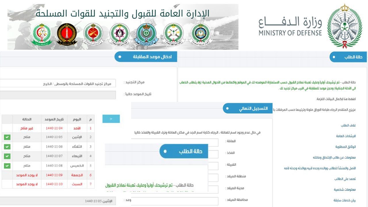 - زيارة الموقع الإلكتروني الرسمي لوزارة الدفاع السعودية، بوابة التجنيد الموحد.