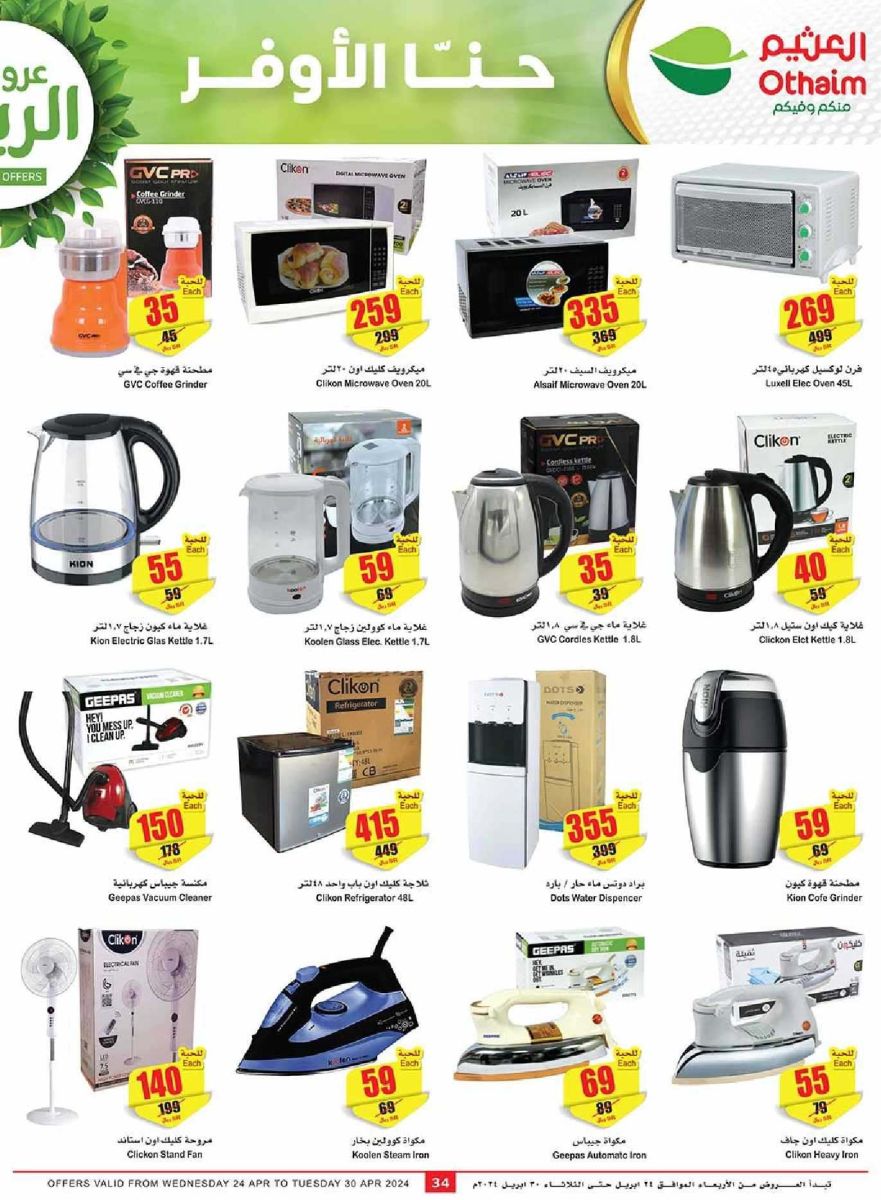 ولتسهيل مهمة تحضير الطعام، يقدم العثيم عروض على الأفران الكهربائية وأجهزة الميكروويف، مثل فرن لوكسيل وميكروويف كليك أون، التي تتيح للمستخدمين تسخين أطباقهم المفضلة بكفاءة وسهولة.