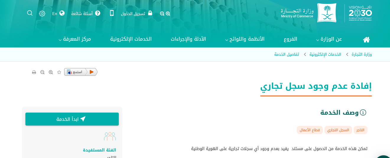 - زيارة الموقع الرسمي لوزارة التجارة السعودية الخاص بخدمة الإفادة بعدم وجود سجل مدني.