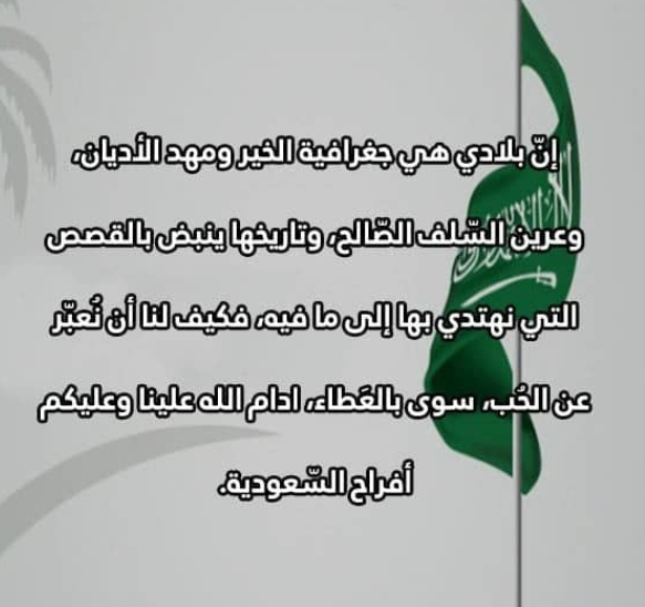 هذه الكلمات تحمل مشاعرنا الصادقة تجاه وطننا الغالي وتحتفي بمناسبة اليوم الوطني، متذكرين فيها تاريخ المملكة ومجد الأجداد: