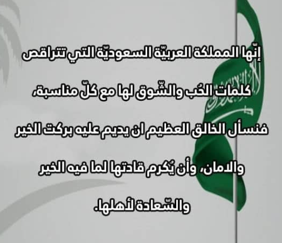 - "وطني السعودية، وتسقط الكلمات خجل في وصفك، فأنت الحكاية التي لا يجوز الوقوف أمامها سوى بدموع الحب."