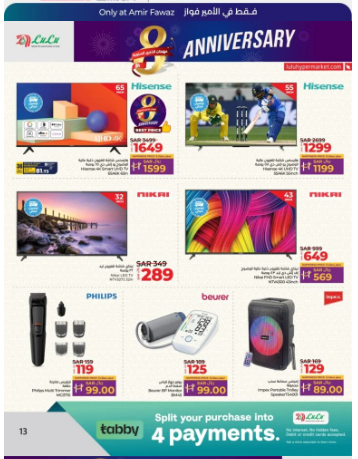 تقدم لولو هايبر ماركت خصومات كبيرة على مجموعة من الأجهزة الكهربائية والشاشات الذكية، لتلبية احتياجات المنزل العصري بأسعار منافسة، ومن بين هذه العروض: