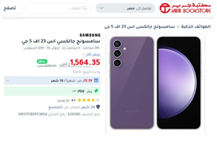 تتيح مكتبة جرير إمكانية شراء Samsung Galaxy S23 FE بسعر مناسب مع خصومات وتقسيط مرن لعدة أشهر، التفاصيل الكاملة للأسعار كالتالي: