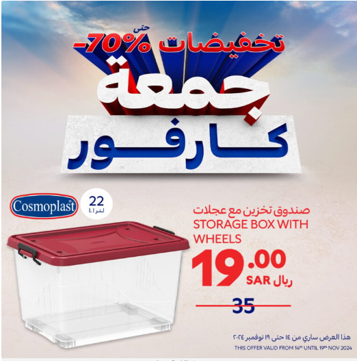 - صندوق تخزين مع عجلات: بسعر مخفض 19 ريال بدلاً من 35 ريال.