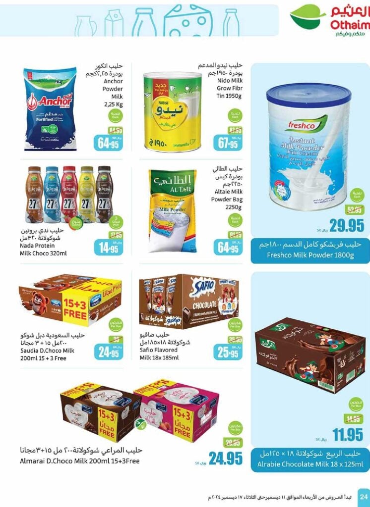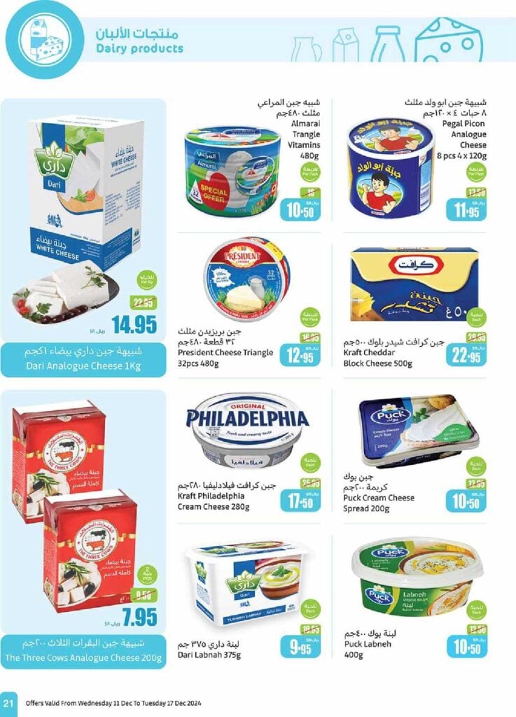 تنتهي هذه العروض الحصرية على منتجات الألبان يوم الثلاثاء الموافق 17 ديسمبر 2024.