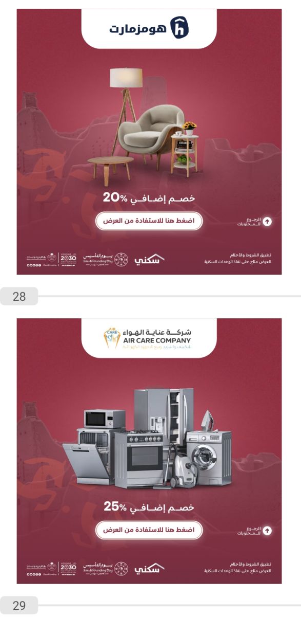 بمناسبة يوم التأسيس، أطلقت وزارة الإسكان خصومات وعروضًا خاصة للمواطنين على التجهيزات والأثاث السكني ضمن برنامج سكني، حيث يمكن الاستفادة منها خلال الفترة المحددة للعروض.