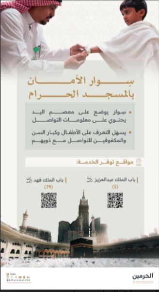 - الأطفال: لحمايتهم من الضياع أثناء التنقل داخل أروقة المسجد الحرام وساحاته.
