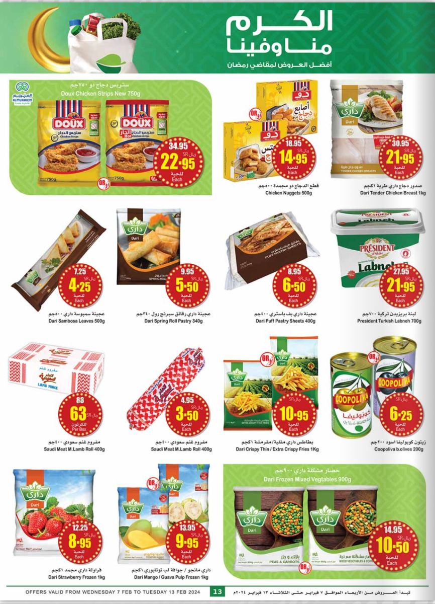 - قطع دجاج دو مجمدة بوزن نصف كيلو بسعر 14.95 ريال بدلاً من 18.95 ريال.