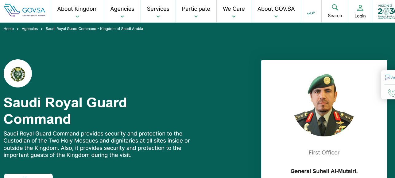- زيارة الموقع الإلكتروني لرئاسة الحرس الملكي السعودي.