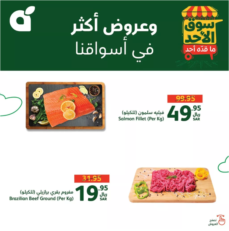 تشمل هذه العروض قلوب الدجاج الطازجة من علامة التنمية، بالإضافة إلى خصومات على أسعار سمك الرنجة المدخن الأردني من عمارة، سمك الحريد الصغير، وسمك الشيم.