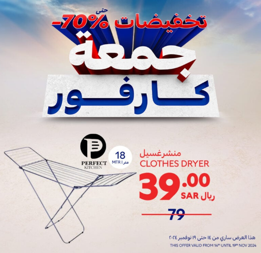 - منشر غسيل بطول 18 متر: بسعر 39 ريال بدلاً من 79 ريال، بخصم يتجاوز 50%.