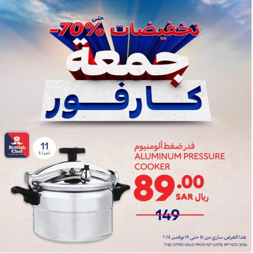 - قدر ضغط ألومنيوم بسعة 11 لتر: الآن بسعر 149 ريال بدلاً من 189 ريال.