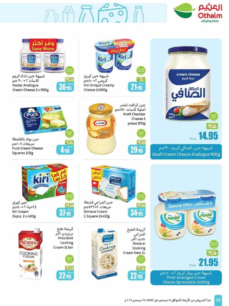 تنتهي هذه العروض الحصرية على منتجات الألبان يوم الثلاثاء الموافق 17 ديسمبر 2024.
