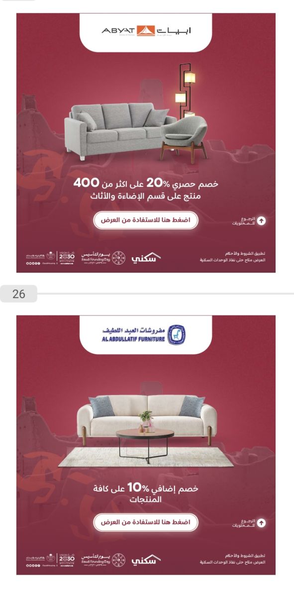 بمناسبة يوم التأسيس، أطلقت وزارة الإسكان خصومات وعروضًا خاصة للمواطنين على التجهيزات والأثاث السكني ضمن برنامج سكني، حيث يمكن الاستفادة منها خلال الفترة المحددة للعروض.