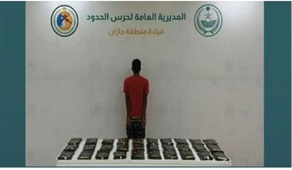 وفي عملية أخرى موازية، تمكنت دوريات حرس الحدود في قطاع العارضة بمنطقة جازان من القبض على مخالف لنظام أمن الحدود من الجنسية الإثيوبية، كان بحوزته أربعة وثلاثون كيلوغراماً من مادة الحشيش المخدر.